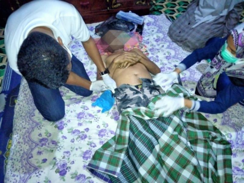 Ketfo : Mayat korban saat diperiksa oleh tim medis puskesmas setempat