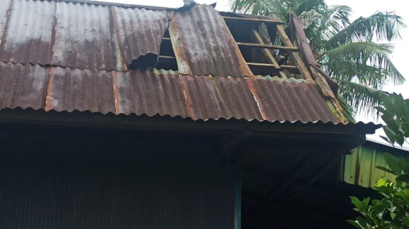” Dua rumah warga saya yang seng atapnya diterangkan angin tadi,” kata Arifin Para.