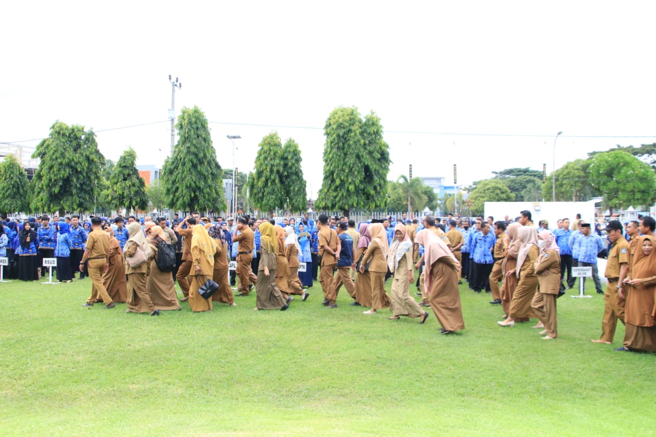 Meski demikian, ternyata masih banyak juga ASN yang lalai terhadap aturan ini. Terbukti pada Apel Gabungan OPD di halaman Kantor Bupati, puluhan ASN masih mengenakan baju keki, bukan baju Korpri sebagaimana yang diharuskan.