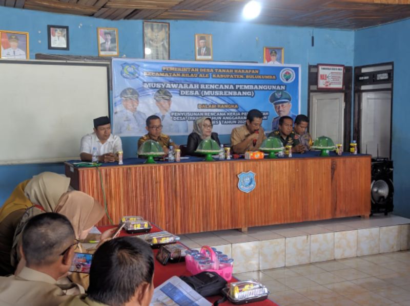 RUBRIK.co.id,BULUKUMBA- Pemerintah Desa (Pemdes) Tanah Harapan, kecamatan Rilau Ale, kabupaten Bulukumba , Sulawesi Selatan melaksanakan Musrenbangdes RKPDes tahun 2024 dan RU RKPdesa tahun 2025 bertempat di aula kantor desa Tanah Harapan Selasa 25 Juli 2023.
