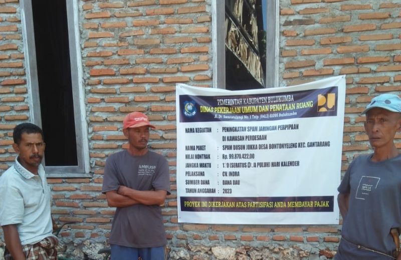RUBRIK.co.id,BULUKUMBA-Proyek Perluasan Sistem Penyediaan Air Minum (SPAM) Jaringan Perpipaan, Pengembangan jaringan distribusian dan sambungan rumah di dusun Jokka, desa Bontonyeleng, kecamatan Gantarang, Kabupaten Bulukumba, Sulawesi Selatan dari Anggaran Dana Alokasi Umum (DAU) tahun 2023 dari dinas Pekerjaan Umum dan Penataan Ruang dipertanyakan masyarakat .