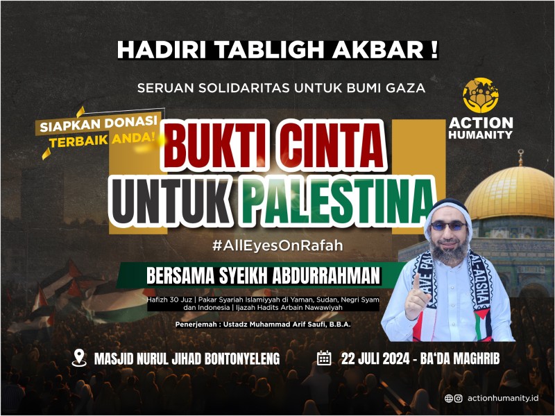 Tabligt akbar ini bertemakan seruan Solidaritas Untuk Bumi Gaza sebagai bukti cinta kita untuk saudara kita di Palestina.