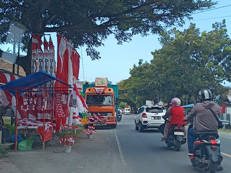 Ketfo : Salah satu penjual bendera merah putih di jalan pahlawan desa Taccorong