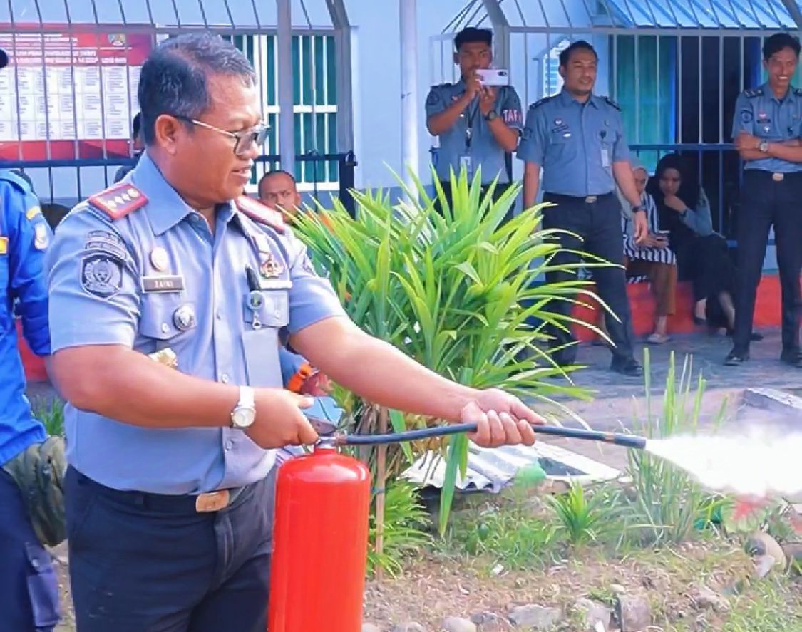 pegawai Lapas Dan anggota PIPAS Cabang serta Warga Binaan diajarkan tata cara teknik pemadaman api secara manual menggunakan karung basah dan Juga Alat Pemadam Api Ringan (APAR) di luar ruangan. Satu per satu pegawai Lapas, Dan warga Binaan mempraktikkan pemadaman api yang berkobar di dalam tong menggunakan dua metode atas petunjuk dan arahan petugas Damkar.