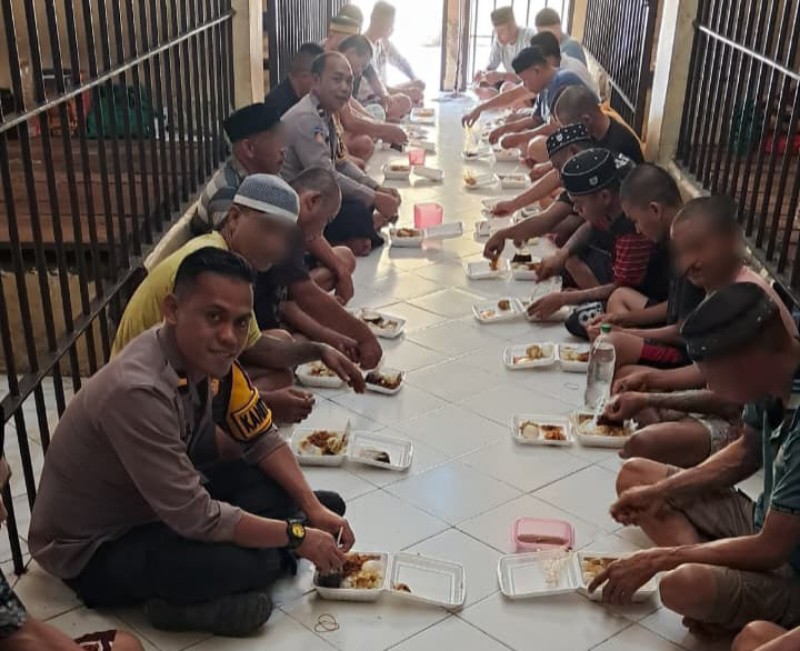 Potret yang terekam dalam gambar ini menunjukkan sisi humanis dari institusi Kepolisian, di mana para petugas tak hanya menjalankan tugas pengamanan, tetapi juga menjalin pendekatan emosional dan sosial dengan para tahanan.