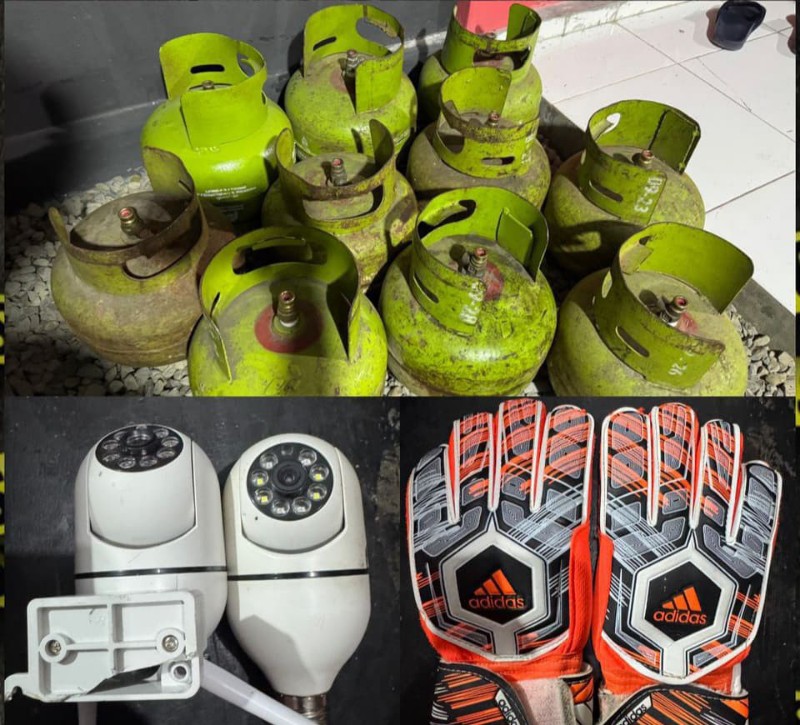 Dalam penangkapan ini, polisi turut mengamankan barang bukti berupa 10 tabung gas LPG 3 kg, 2 unit kamera CCTV, dan satu pasang sarung tangan bola (kiper).