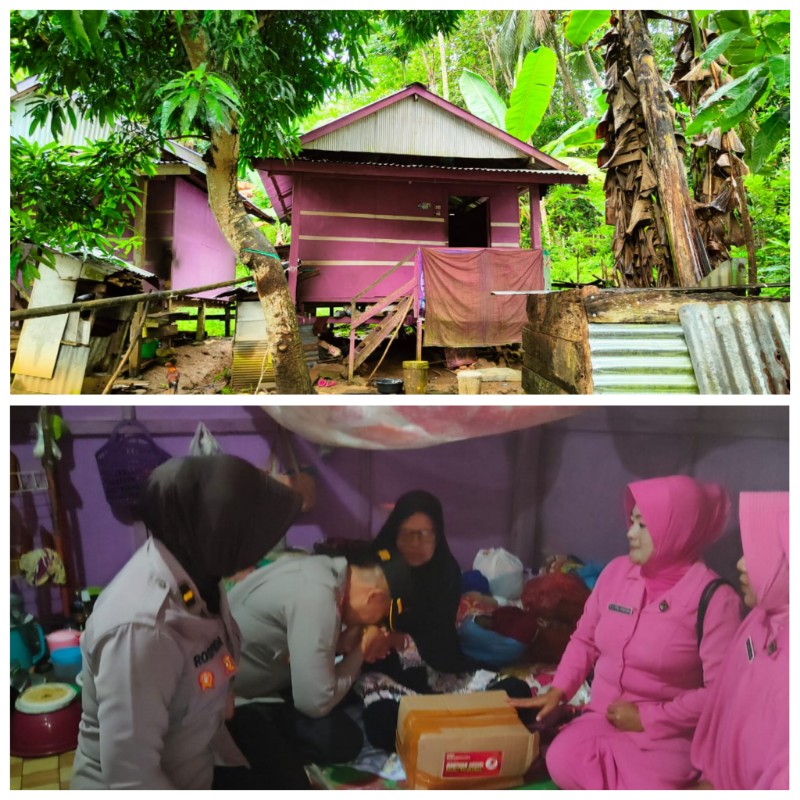 Kapolsek bersama rombongan mengunjungi rumah panggung sederhana semi permanen berukuran 4×3 meter persegi yang dihuni oleh dua lansia, Nenek Saju dan Nenek Bajinang. Keduanya telah lama tinggal bersama dalam keterbatasan, hidup dengan seadanya di usia senja mereka.