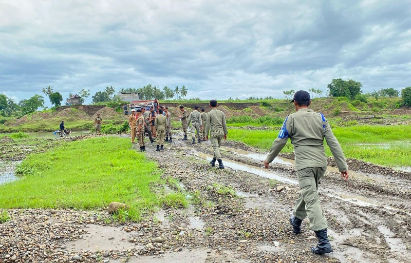 Puluhan anggota satpol PP bersama dengan DLHK mendatangi lokasi tambang ilegal yang berada di Ujung loe, kedatangan tim gabungan membuat sejumlah pekerja tambang meninggalkan lokasi.