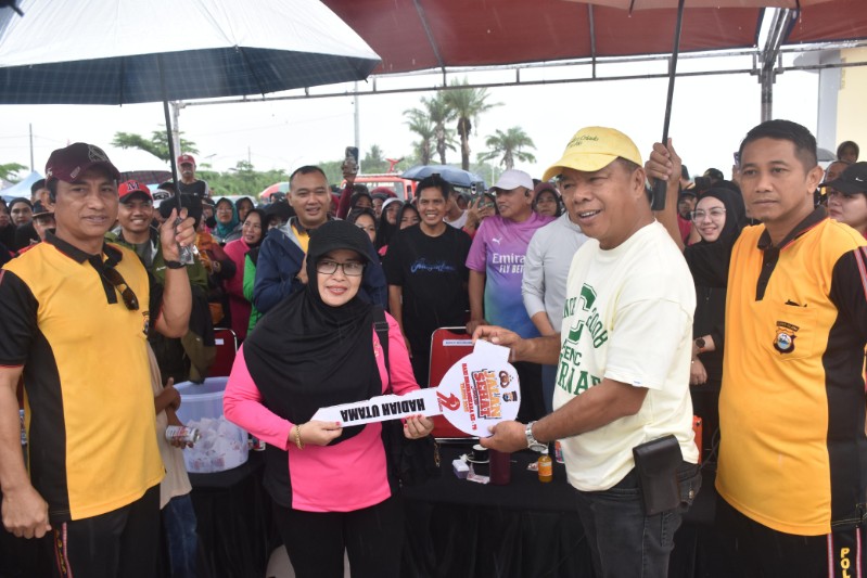 RUBRIK.co.id,BULUKUMBA- Andi Herni istri anggota polisi membawa pulang sepeda motor baru setelah kupon undiannya terpilih sebagai pemenang dalam kegiatan jalam sehat yang digelar Polres Bulukumba minggu 29 juni 2025