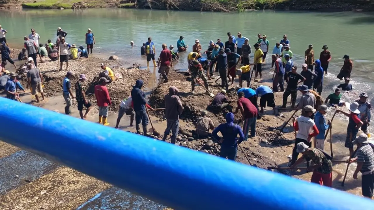 Warga terlihat kompak tanpa komando turun bersama ke aliran sungai bendungan induk Bontonyeleng selama dua hari terakhir.