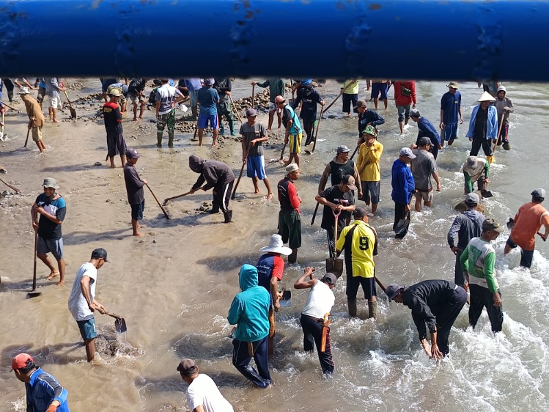 Dari pantauan wartawan ratusan petani desa Bontonyeleng dan Palambarae dengan alat cangkul dan tangan membersihkan sampah, kerikil, batu besar di pintu masuk irigasi induk .