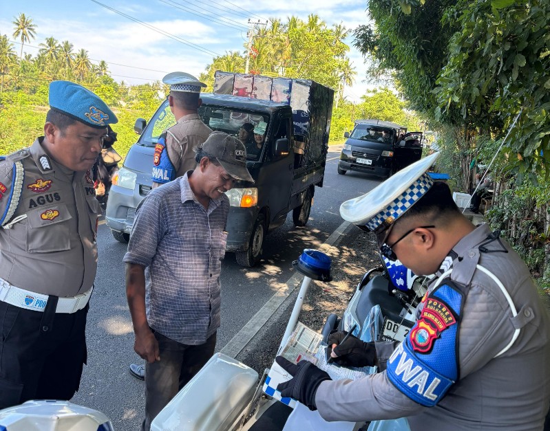 Ketfo: Pelanggar saat tindak tegas dengan tilang oleh polisi saat operasi patuh 2025 di kabupaten Bulukumba, Sabtu 19 Juli 2025 (Dok rubrik.co.id)