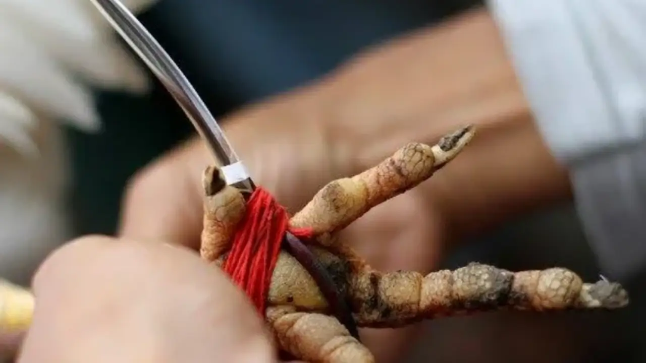 Ilustrasi pemasangan taji sabung ayam
