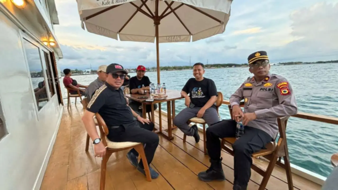 Dalam pelayaran tersebut, mereka menikmati keindahan laut Bulukumba sambil berbincang santai di atas kapal Pinisi — simbol kebanggaan dan warisan budaya maritim masyarakat setempat.