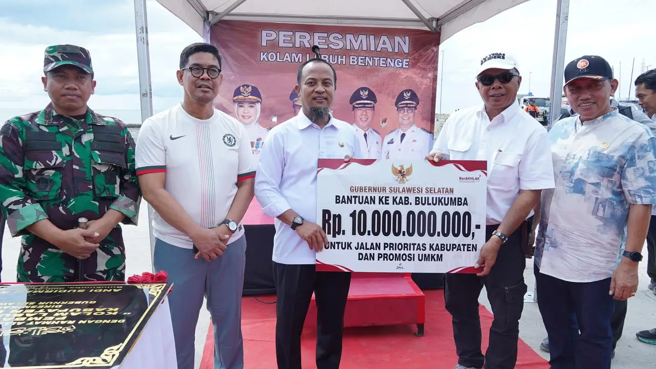 Gubernur Andi Sudirman, yang tiba menggunakan helikopter, menegaskan bahwa pembangunan Kolam Labuh merupakan investasi penting bagi masyarakat Bulukumba. Selain meresmikan fasilitas tersebut, ia juga menyerahkan bantuan keuangan secara simbolis senilai Rp10 miliar dari Pemprov Sulsel.