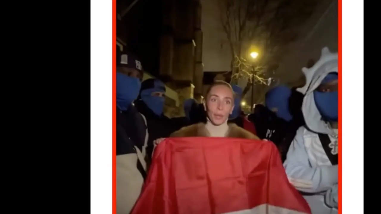Dalam video yang beredar luas, Bonnie Blue terlihat berada di depan Kantor Kedutaan Besar Republik Indonesia (KBRI) di London.