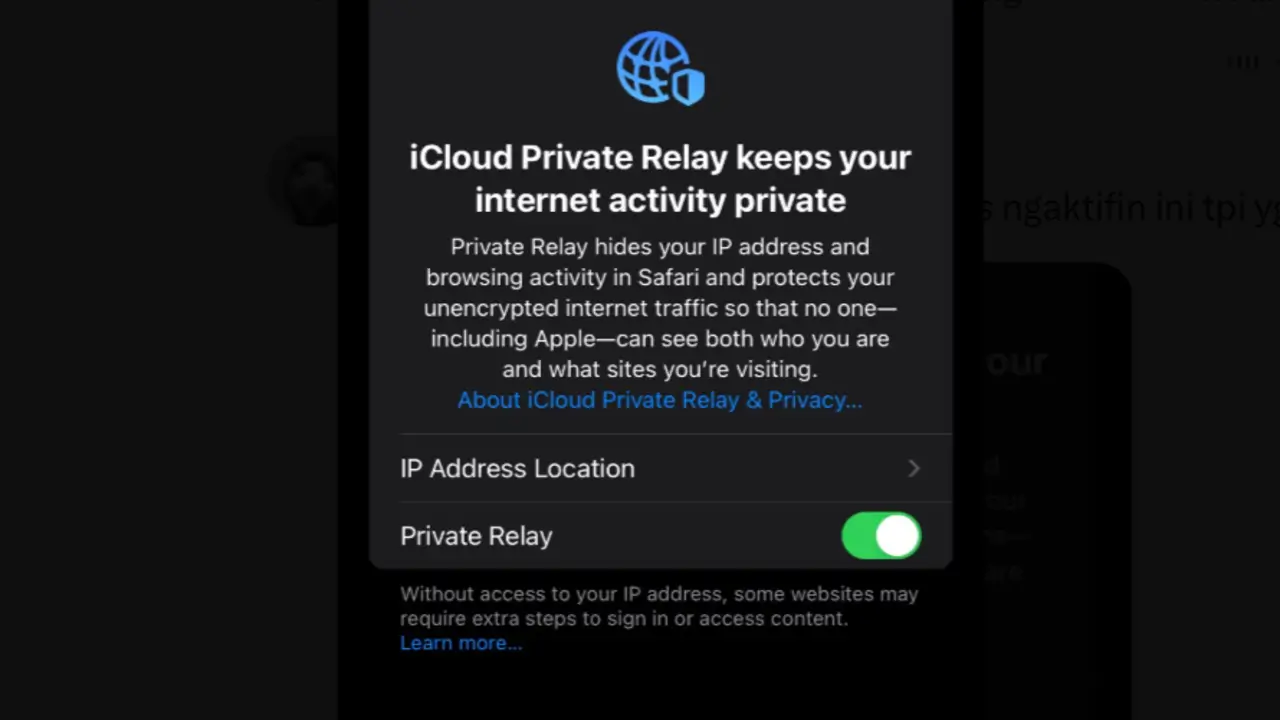 Fitur bawaan Apple ini berfungsi menyamarkan alamat IP dan mengalihkan jalur koneksi internet agar lebih aman dan stabil.